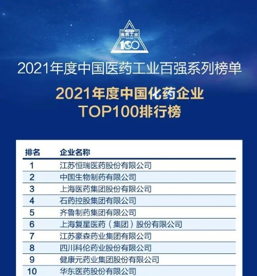 7月12日晚,正在举行的2022米思会(中国医药健康产业共生大会)上,发布了“2021年度中国医药工业百强系列榜单”。jinnian金年会以扎实的创新研发实力和稳健的市场运营能力,再次蝉联“中国化药企业TOP100排行榜”榜首。