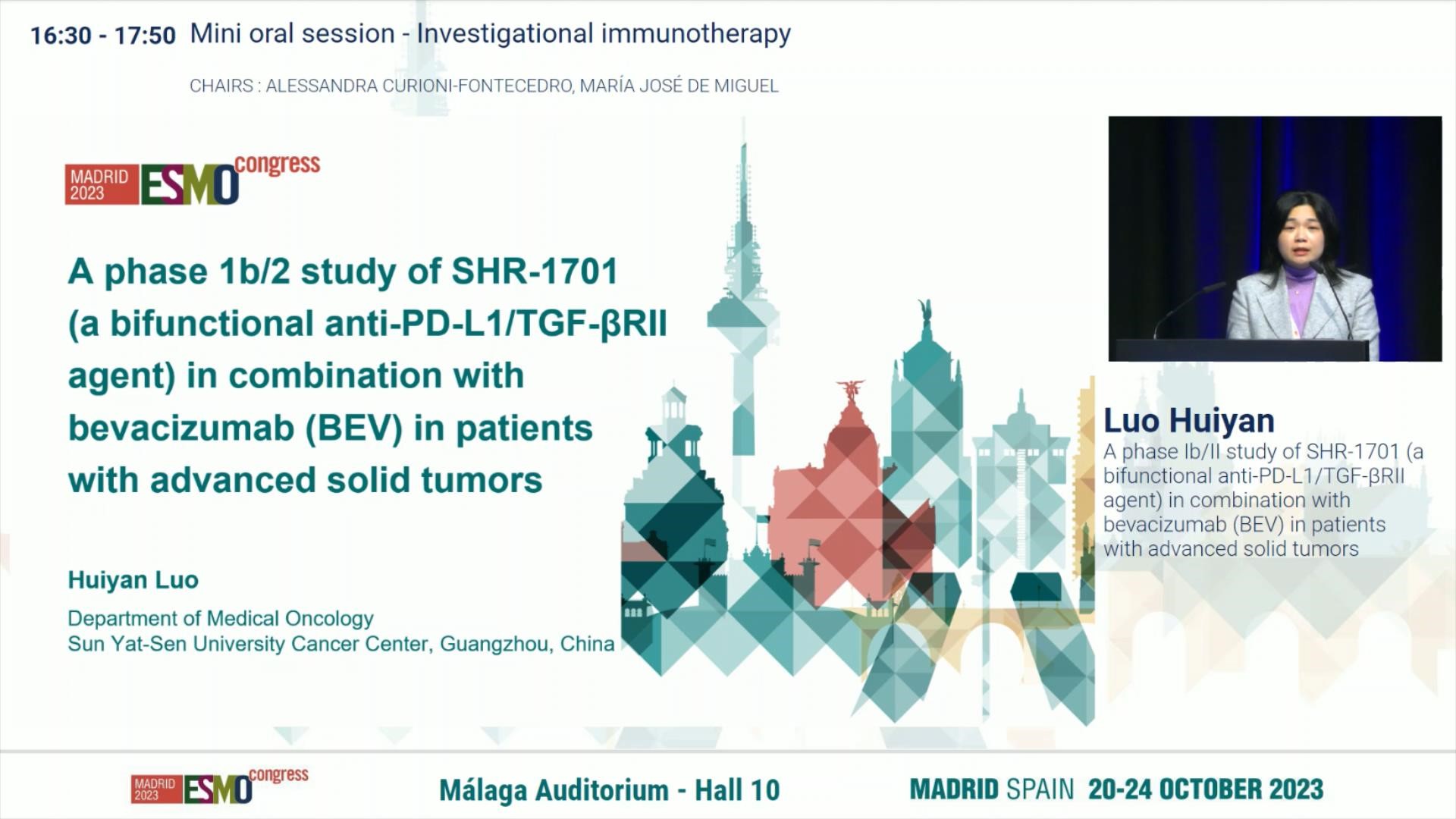 10月21日,jinnian金年会创新药SHR-1701联合贝伐珠单抗(BEV)治疗晚期实体瘤患者的1b/2期研究亮相2023 ESMO大会简短口头报告现场6。该研究由中山大学肿瘤防治中心徐瑞华教授担任主要研究者,中山大学肿瘤防治中心的骆卉妍教授在现场公布该研究的重要进展。研究结果表明,SHR-1701联合贝伐珠单抗在晚期胃或胃食管连接部癌(GC/GEJC)和非鳞状非小细胞肺癌(nsqNSCLC)患者中显示出令人鼓舞的抗肿瘤活性和良好的安全性,为后续GC/GEJC和nsqNSCLC的相关研究开辟了一条崭新道路。