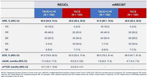 表2. 根据RECICL/mRECIST评估的肿瘤缓解