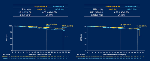 与安慰剂联合内分泌治疗(ET)相比,达尔西利(Dalp)联合ET显著延长了无浸润性疾病生存期(iDFS)(HR 0.56,95% CI 0.43–0.71;单侧P<0.0001),且在2年时带来4.5%的绝对iDFS获益。达尔西利带来的iDFS获益在各分层因素和其他基线亚组中总体一致。无病生存期(DFS)和无远处病生存期(DDFS)也显示达尔西利联合ET优于安慰剂联合ET。安全性方面,达尔西利安全性整体可控。