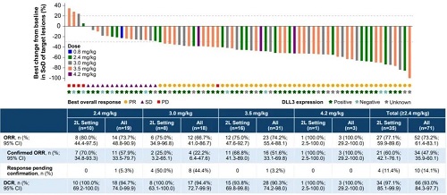 本研究是一项多中心、开放标签的Ⅰ期临床研究(NCT06443489,图1),纳入经组织学或细胞学确诊的复发性或转移性SCLC及其他DLL3表达阳性的NEC患者(经标准治疗后疾病进展或复发)。